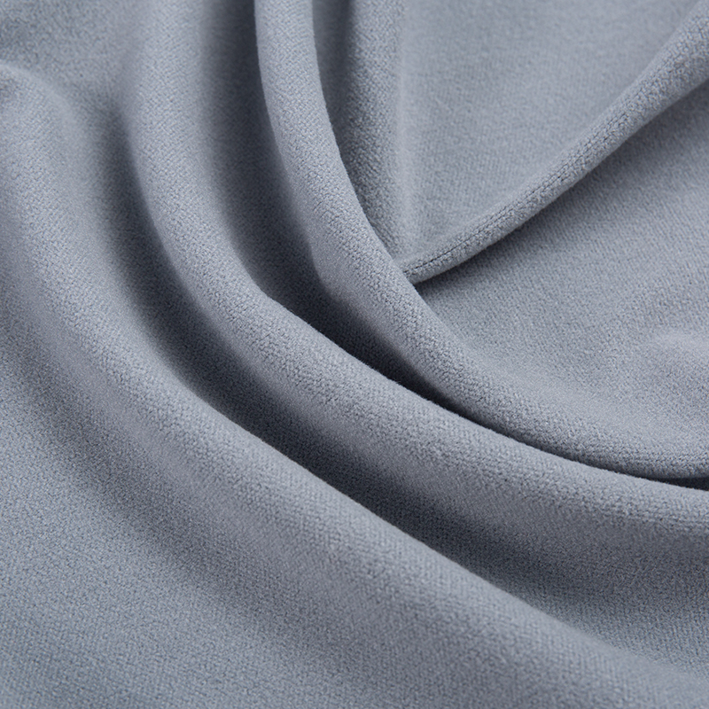 A través de un meticuloso proceso de siesta, la tela desarrolla una textura densa, ultrasuave y de pelo corto con una sensación aterciopelada en la mano —similar a la cachemira— que brinda calidez y comodidad instantáneas. Esta estructura de pilotes única crea una barrera de aire eficaz, mejorando el aislamiento térmico y proporcionando hasta un 30% más de retención de calor en comparación con los tejidos de punto estándar.