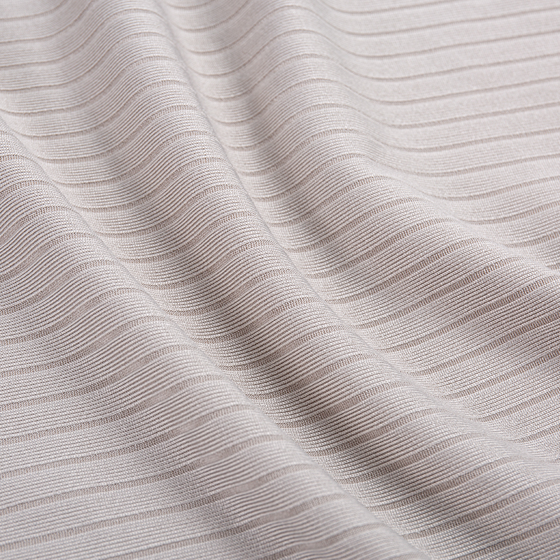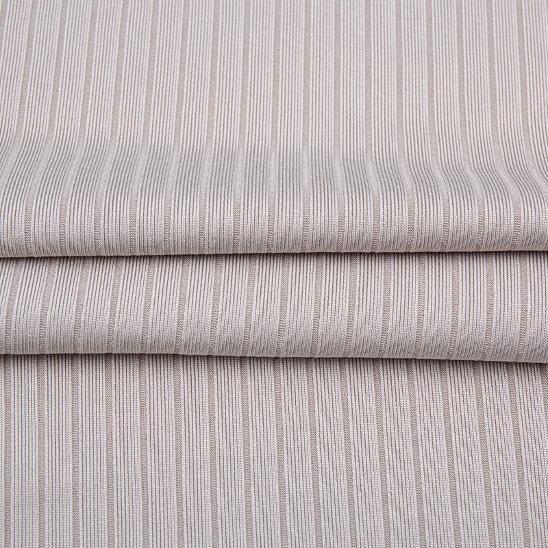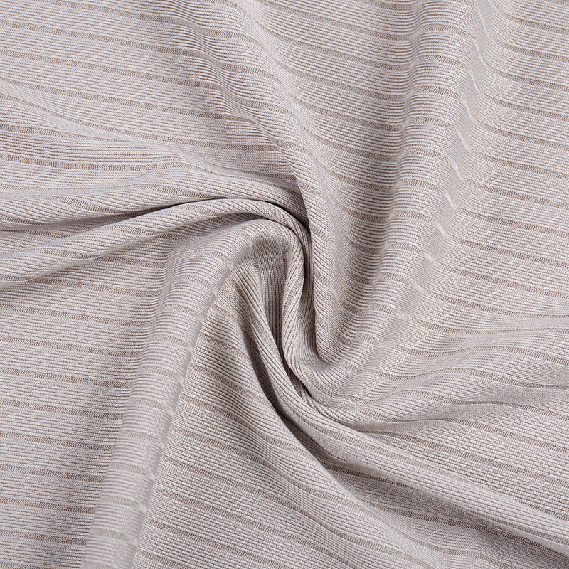 Este tejido elástico de costillas de poliéster suave y elegante de 8×4 presenta una composición equilibrada de 95% poliéster y 5% spandex, que combina un excelente rendimiento elástico con durabilidad y comodidad. La tela está diseñada con una estructura de punto acanalado de 8×4, creando una superficie refinada y texturizada que ofrece atractivo visual y ventajas funcionales.