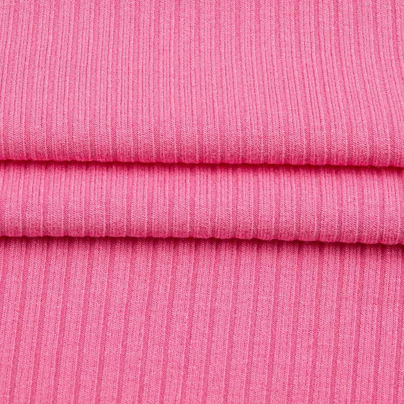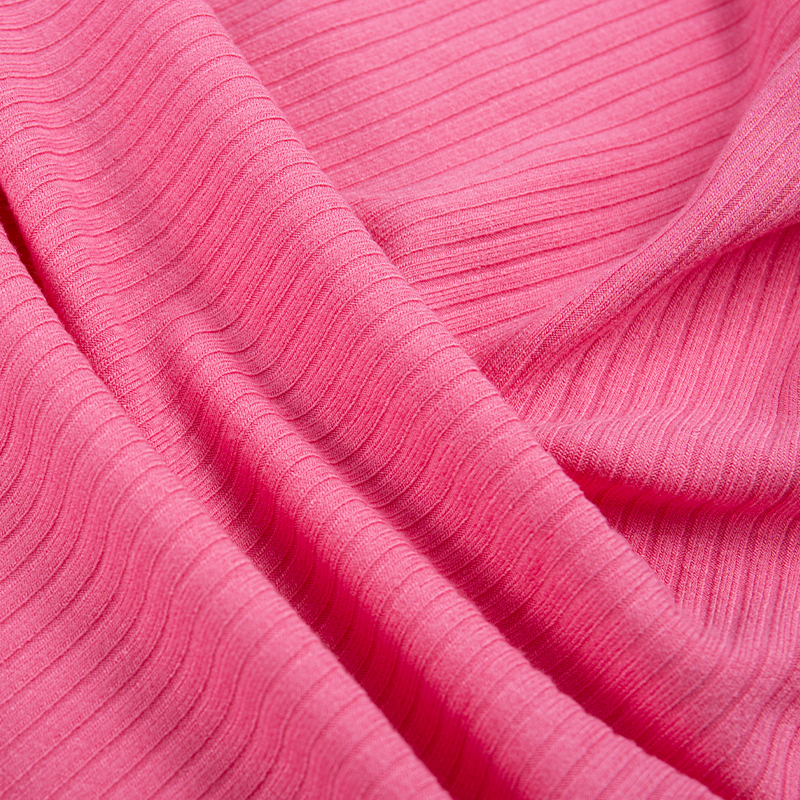 Este tejido de punto de costilla de spandex de rayón lavable y duradero 5×4 está elaborado con una mezcla cuidadosamente equilibrada de 92% de rayón (fibra de celulosa regenerada) y 8% de spandex, que combina la suavidad y transpirabilidad de las fibras de origen natural con el estiramiento y la recuperación del elastano. La tela presenta una estructura de punto acanalado de 5×4, que brinda excelente elasticidad, retención de forma y una sensación de mano suave y agradable para la piel.