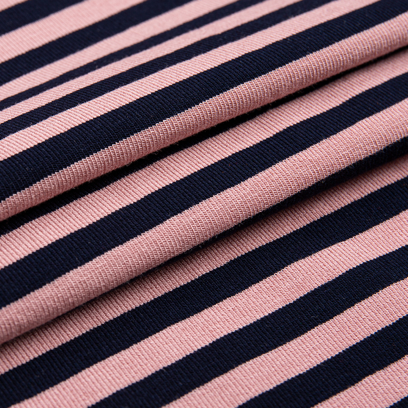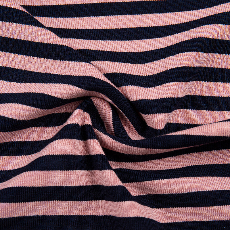 Esta tela de punto de costilla a rayas teñida con hilo está confeccionada con una mezcla científicamente equilibrada de 60% rayón, 35% poliéster y 5% spandex, que combina la suavidad y transpirabilidad de las fibras de origen natural con la durabilidad y estabilidad de forma de los materiales sintéticos. La tela presenta una estructura de punto acanalado y se produce mediante el proceso de teñido de hilos, donde los hilos se tiñen antes de tejer—, lo que garantiza que los colores de las rayas sean vivos, duraderos y resistentes a la decoloración o al sangrado del color incluso después de múltiples lavados.