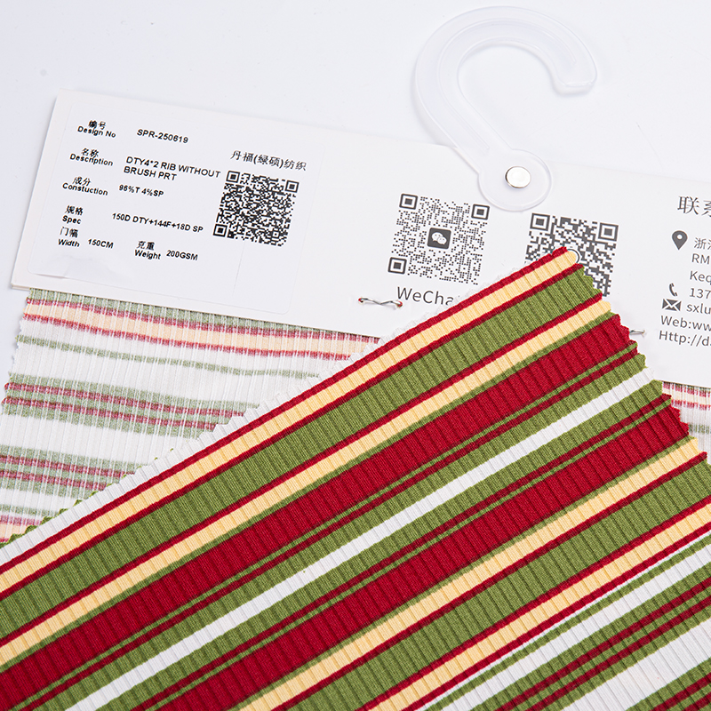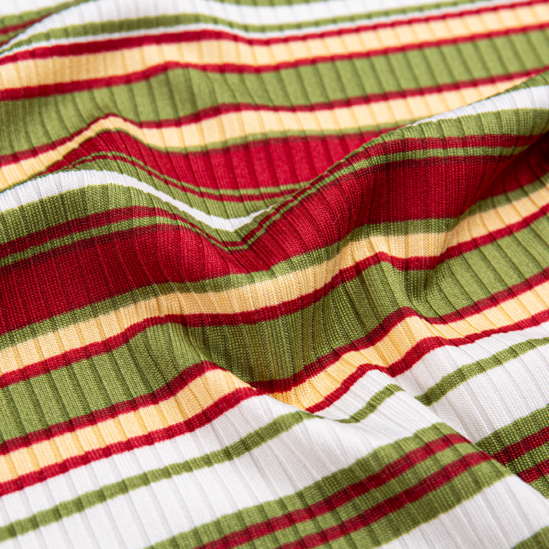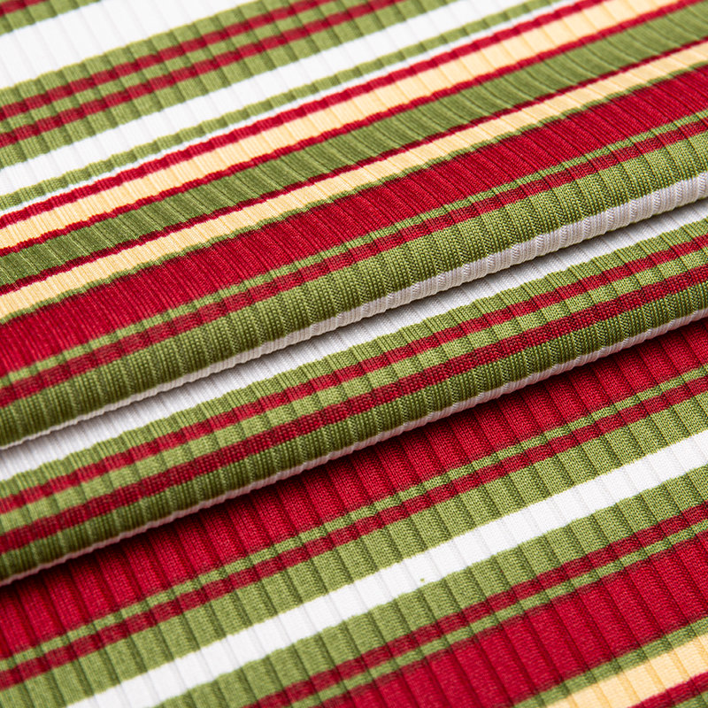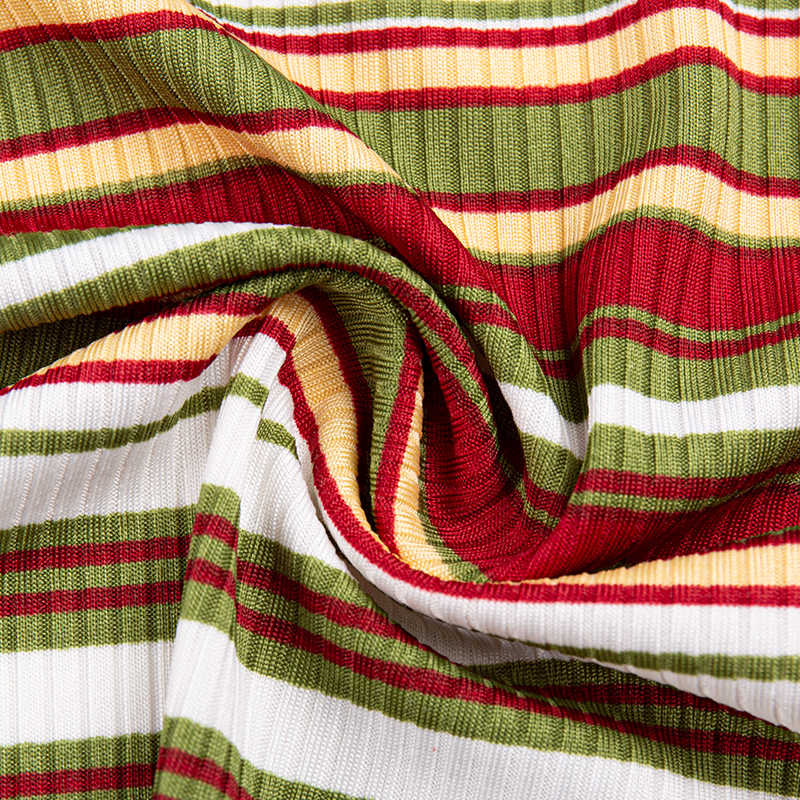 Ya sea que se use en ropa informal, ropa deportiva o textiles para el hogar, este tejido de punto de costilla a rayas teñido con hilo combina durabilidad, comodidad y estilo—, lo que lo convierte en una opción práctica y visualmente atractiva para el diseño de prendas modernas.